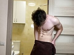 WET BANG-OUT MEN - Handsome jockstrap youthfull fag draining off his immense manstick