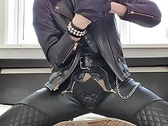 Naughty young model gets horny, fucks his waistband, and fills a condom with cum!