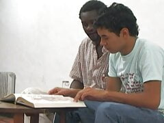 Camilo Brown gives young Emmanuel Kokichi a messy deep-throat blowjob and swallows his cum